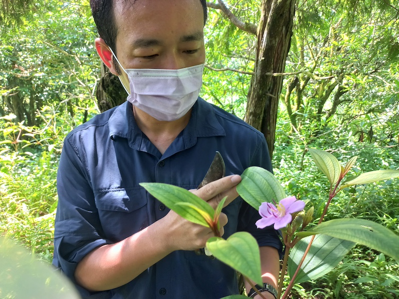 六月底的福山植物園相較山下的酷暑,在大片綠蔭覆蓋下只略顯炎熱。我們隨研究員林建融走進植物園溫室旁的灌叢林間,尋覓即將成為他鏡頭主角的植物——正值花季的台灣野牡丹。